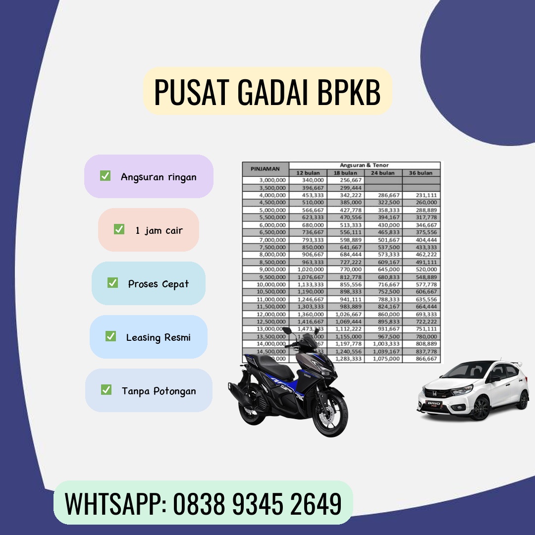 Keterbatasan finansial seringkali menjadi hambatan dalam mencapai berbagai tujuan, baik itu untuk kebutuhan mendesak maupun rencana jangka panjang. Butuh biaya pendidikan anak? Ingin merenovasi rumah? Atau mungkin ada kebutuhan medis yang tak terduga? Jangan khawatir, solusi cepat dan mudah ada di tangan Anda! Gadai BPKB motor dan mobil bisa menjadi jawaban atas permasalahan keuangan Anda.