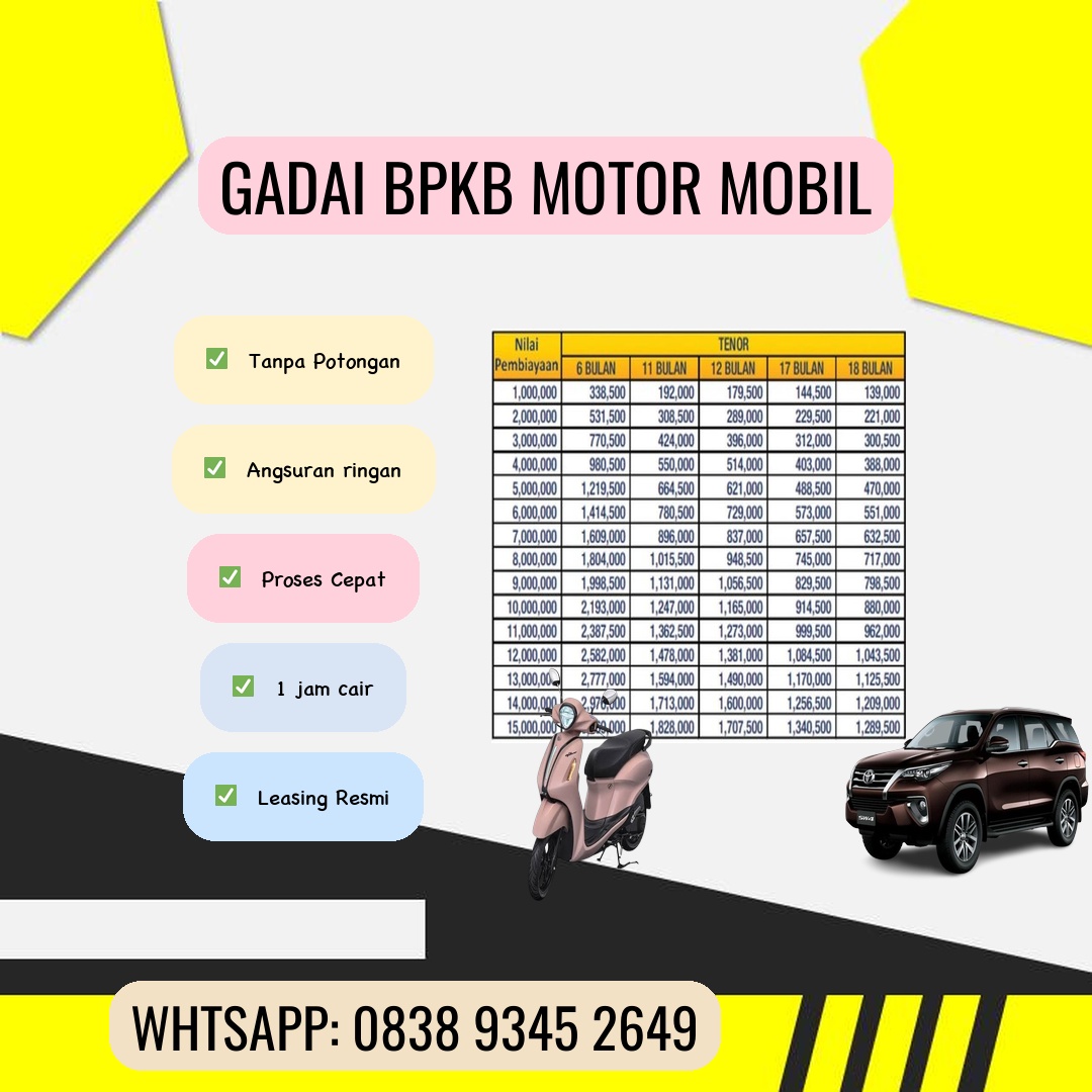 Butuh dana cepat untuk keperluan mendesak? Jangan khawatir! Gadai BPKB motor dan mobil bisa menjadi solusi finansial yang tepat dan efisien untuk Anda. Artikel ini akan membahas seluk-beluk gadai BPKB, keuntungannya, serta hal-hal yang perlu Anda perhatikan sebelum memutuskan untuk menggunakan layanan ini. Apa Itu Gadai BPKB Motor & Mobil? Gadai BPKB adalah proses meminjam uang dengan menggunakan Sertifikat Registrasi dan Identifikasi Kendaraan Bermotor (BPKB) sebagai jaminan. Anda tetap dapat menggunakan kendaraan Anda sehari-hari, sementara lembaga pembiayaan akan menyimpan BPKB Anda hingga pinjaman lunas. Prosesnya jauh lebih cepat dan mudah dibandingkan dengan mengajukan pinjaman konvensional di bank. Keuntungan Menggadaikan BPKB Motor & Mobil: Proses Cepat & Mudah: Tidak perlu persyaratan yang rumit dan prosesnya jauh lebih singkat dibandingkan dengan pinjaman bank. Anda bisa mendapatkan dana yang dibutuhkan dalam waktu singkat. Persyaratan Mudah: Biasanya hanya membutuhkan BPKB kendaraan, KTP, dan beberapa dokumen pendukung lainnya. Syarat yang mudah ini membuat akses pinjaman menjadi lebih terbuka. Kendaraan Tetap Bisa Digunakan: Salah satu keuntungan utama adalah Anda masih bisa menggunakan kendaraan Anda seperti biasa selama masa pinjaman. Ini sangat membantu bagi Anda yang membutuhkan kendaraan untuk bekerja atau keperluan lainnya. Fleksibel dalam Pemilihan Tenor: Banyak lembaga pembiayaan menawarkan berbagai pilihan tenor (jangka waktu pinjaman) yang fleksibel, sehingga Anda bisa memilih yang sesuai dengan kemampuan keuangan Anda. Solusi Dana Darurat yang Efektif: Gadai BPKB menjadi solusi tepat ketika Anda membutuhkan dana cepat untuk berbagai keperluan darurat, seperti biaya medis, renovasi rumah, atau biaya pendidikan. Hal-hal yang Perlu Diperhatikan Sebelum Gadai BPKB: Pilih Lembaga Pembiayaan yang Terpercaya: Pastikan lembaga pembiayaan yang Anda pilih memiliki reputasi baik, terdaftar resmi, dan transparan dalam pengurusan pinjaman. Hindari lembaga yang menawarkan bunga terlalu rendah atau proses yang tidak jelas. Pahami Bunga dan Biaya Administrasi: Gadai BPKB Motor dan Mobil Blitar Perhatikan dengan cermat bunga dan biaya administrasi yang dikenakan. Bandingkan suku bunga dari beberapa lembaga pembiayaan sebelum memutuskan untuk meminjam. Jangan hanya tergiur dengan bunga rendah tanpa memperhatikan biaya-biaya tersembunyi. Baca Perjanjian Pinjaman dengan Teliti: Sebelum menandatangani perjanjian pinjaman, bacalah seluruh isi perjanjian dengan teliti. Pastikan Anda memahami semua syarat dan ketentuan yang berlaku. Jangan ragu untuk bertanya jika ada hal yang kurang jelas. Pastikan Kondisi Kendaraan Anda: Nilai taksiran kendaraan Anda akan berpengaruh pada jumlah pinjaman yang bisa Anda dapatkan. Pastikan kendaraan Anda dalam kondisi baik agar mendapatkan nilai taksiran yang lebih tinggi. Rencanakan Angsuran dengan Matang: Buatlah rencana pembayaran angsuran dengan matang agar Anda tidak kesulitan dalam melunasi pinjaman. Hitung kemampuan finansial Anda sebelum menentukan tenor dan jumlah pinjaman. Bagaimana Cara Menggadaikan BPKB Motor & Mobil? Prosesnya umumnya cukup mudah. Anda perlu menyiapkan dokumen-dokumen yang dibutuhkan, kemudian mengajukan permohonan pinjaman ke lembaga pembiayaan pilihan Anda. Setelah pengajuan disetujui, Anda akan menerima dana pinjaman dan BPKB Anda akan disimpan sebagai jaminan. Tips Memilih Lembaga Gadai BPKB yang Tepat: Cari Informasi di Internet: Lakukan riset online untuk mencari informasi tentang lembaga pembiayaan gadai BPKB yang terpercaya dan memiliki review positif dari pelanggan. Bandingkan Penawaran: Bandingkan suku bunga, biaya administrasi, dan tenor dari beberapa lembaga pembiayaan sebelum membuat keputusan. Perhatikan Reputasi & Legalitas: Pastikan lembaga pembiayaan tersebut terdaftar dan diawasi oleh otoritas yang berwenang. Gadai BPKB motor dan mobil merupakan solusi finansial yang praktis dan cepat. Namun, pastikan Anda memahami semua konsekuensinya sebelum memutuskan untuk menggunakan layanan ini. Dengan perencanaan yang matang dan pemilihan lembaga pembiayaan yang tepat, Anda dapat memanfaatkan layanan ini dengan bijak dan mengatasi kebutuhan finansial Anda dengan efektif. Butuh bantuan lebih lanjut? Hubungi kami sekarang juga! [Tambahkan tautan ke website/kontak Anda]