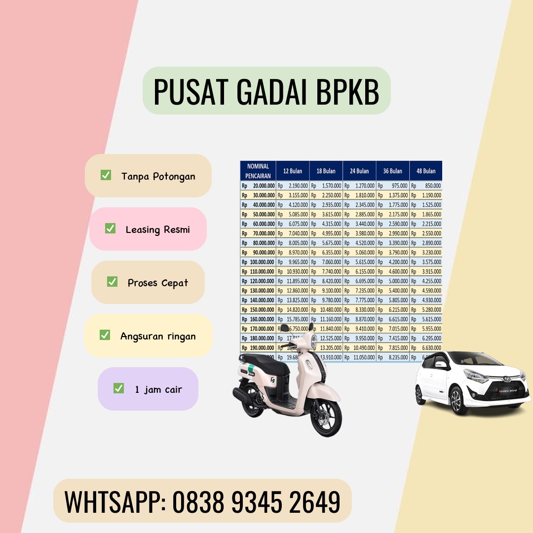 Butuh dana segar untuk berbagai keperluan mendesak? Renovasi rumah? Biaya pendidikan anak? Modal usaha? Jangan khawatir! Gadai BPKB motor dan mobil bisa menjadi solusi finansial yang cepat dan mudah diakses. Artikel ini akan membahas seluk-beluk gadai BPKB, keuntungannya, serta hal-hal penting yang perlu Anda perhatikan sebelum memutuskan untuk menggunakan layanan ini. Keuntungan Menggadaikan BPKB Motor dan Mobil Dibandingkan dengan pinjaman konvensional, gadai BPKB menawarkan beberapa keunggulan, antara lain: Proses Cepat dan Mudah: Proses pengajuan biasanya lebih cepat dan sederhana dibandingkan dengan pinjaman bank. Anda tidak perlu menyediakan banyak dokumen dan menunggu berhari-hari untuk persetujuan. Persyaratan yang Relatif Ringan: Persyaratan untuk mengajukan gadai BPKB umumnya lebih mudah dipenuhi dibandingkan dengan pinjaman bank konvensional. Anda hanya perlu membawa BPKB kendaraan dan beberapa dokumen pendukung. Jangka Waktu Fleksibel: Banyak lembaga pembiayaan menawarkan fleksibilitas dalam menentukan jangka waktu pinjaman, sehingga Anda bisa menyesuaikannya dengan kemampuan pembayaran Anda. Akses Dana Cepat: Setelah pengajuan disetujui, Anda akan langsung menerima dana yang dibutuhkan. Ini sangat membantu dalam situasi darurat. Kendaraan Tetap Bisa Digunakan: Pada sebagian besar kasus, Anda tetap bisa menggunakan kendaraan Anda selama masa pinjaman. Hal ini sangat menguntungkan bagi Anda yang bergantung pada kendaraan untuk bekerja atau kegiatan sehari-hari. Hal Penting yang Perlu Diperhatikan Sebelum Menggadaikan BPKB Meskipun menawarkan banyak keuntungan, penting untuk mempertimbangkan beberapa hal sebelum memutuskan untuk menggadaikan BPKB motor atau mobil Anda: Besaran Bunga dan Biaya Admin: Perhatikan baik-baik besaran bunga dan biaya administrasi yang dikenakan. Bandingkan penawaran dari beberapa lembaga pembiayaan untuk mendapatkan suku bunga yang paling kompetitif. Jangka Waktu Pinjaman: Pilih jangka waktu pinjaman yang sesuai dengan kemampuan Anda untuk membayar. Jangan memilih jangka waktu yang terlalu panjang karena akan membuat total biaya yang harus dibayarkan menjadi lebih besar. Asuransi Kendaraan: Pastikan kendaraan Gadai BPKB Motor dan Mobil Bontang Anda terlindungi dengan asuransi yang memadai selama masa pinjaman. Ini akan melindungi Anda dari kerugian finansial jika terjadi kecelakaan atau kerusakan pada kendaraan. Reputasi Lembaga Pembiayaan: Pilih lembaga pembiayaan yang terpercaya dan memiliki reputasi baik. Cari informasi dan baca review dari pelanggan sebelumnya sebelum memutuskan untuk bekerja sama. Ketentuan Perjanjian: Bacalah dengan teliti semua ketentuan dalam perjanjian sebelum Anda menandatanganinya. Pahami semua hak dan kewajiban Anda sebagai peminjam. Tips Memilih Lembaga Pembiayaan yang Tepat Berikut beberapa tips untuk membantu Anda memilih lembaga pembiayaan yang tepat untuk gadai BPKB motor dan mobil Anda: Bandingkan Suku Bunga dan Biaya: Jangan terpaku pada satu lembaga pembiayaan saja. Bandingkan penawaran dari beberapa lembaga untuk mendapatkan suku bunga dan biaya yang paling kompetitif. Periksa Reputasi dan Legalitas: Pastikan lembaga pembiayaan tersebut terdaftar dan berizin resmi. Cari informasi dan baca review dari pelanggan sebelumnya untuk memastikan reputasinya baik. Perhatikan Layanan Pelanggan: Pilih lembaga pembiayaan yang menyediakan layanan pelanggan yang responsif dan mudah dihubungi. Ini akan memudahkan Anda dalam berkomunikasi dan mendapatkan informasi yang dibutuhkan. Keamanan Transaksi: Pastikan proses transaksi aman dan terjamin kerahasiaannya. Lembaga pembiayaan yang terpercaya akan menjaga kerahasiaan data pribadi Anda. Kesimpulan Gadai BPKB motor dan mobil dapat menjadi solusi finansial yang praktis dan cepat untuk berbagai keperluan. Namun, penting untuk mempertimbangkan dengan cermat berbagai faktor sebelum memutuskan untuk menggunakan layanan ini. Dengan memahami keuntungan, risiko, dan tips memilih lembaga pembiayaan yang tepat, Anda dapat membuat keputusan yang bijak dan mengoptimalkan manfaat dari gadai BPKB. Jangan ragu untuk melakukan riset dan membandingkan penawaran dari berbagai lembaga pembiayaan sebelum membuat keputusan akhir. Semoga informasi ini bermanfaat! (Ajakan Aksi): Hubungi kami sekarang juga untuk konsultasi gratis dan dapatkan penawaran terbaik untuk gadai BPKB motor dan mobil Anda! [Tambahkan tautan website/kontak]