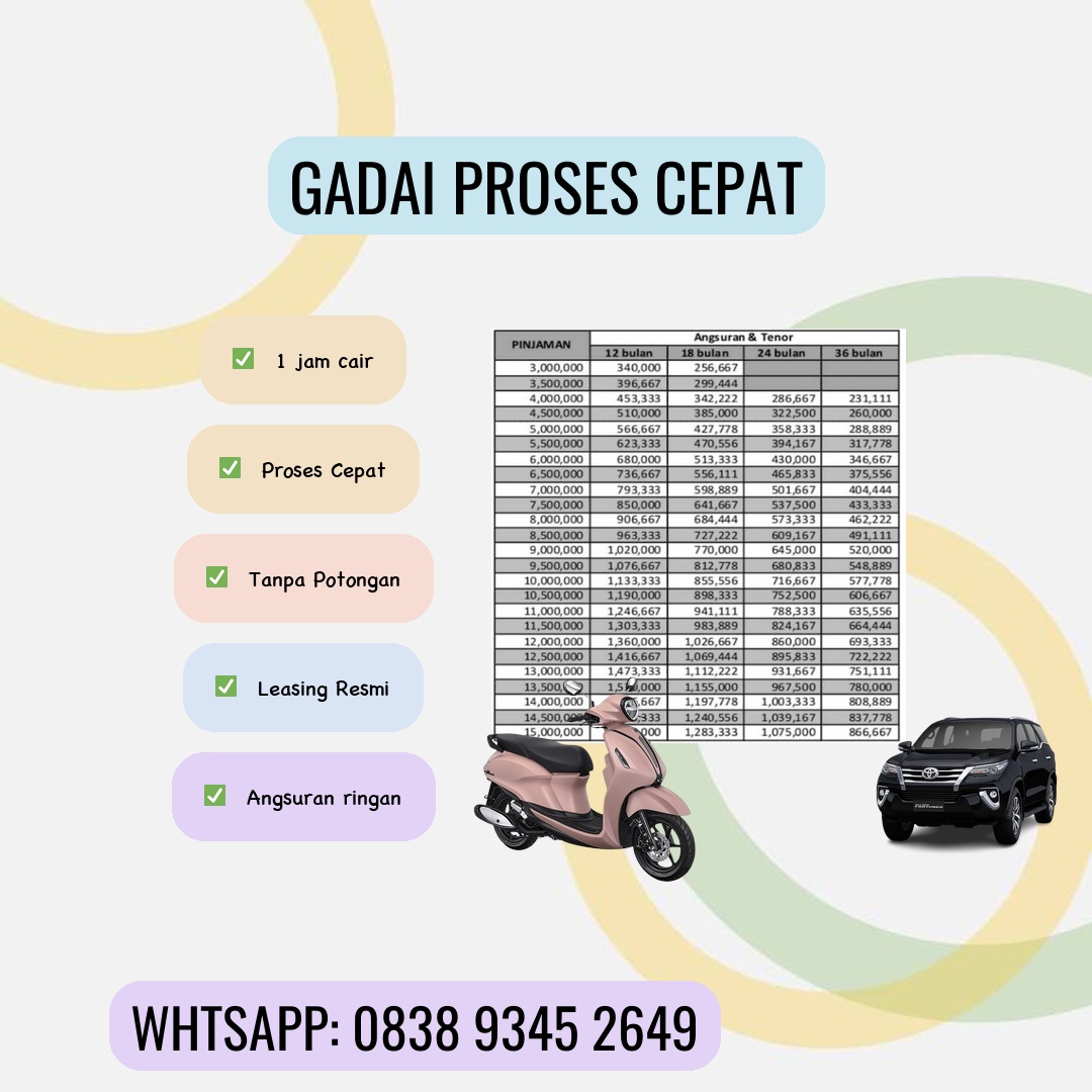 Butuh dana mendesak untuk biaya pendidikan anak, renovasi rumah, atau modal usaha? Jangan khawatir! Gadai BPKB motor dan mobil bisa menjadi solusi finansial cepat dan mudah yang tepat untuk Anda. Artikel ini akan membahas seluk-beluk gadai BPKB, keuntungannya, serta hal-hal penting yang perlu Anda perhatikan sebelum memutuskan untuk menggunakan layanan ini. Apa Itu Gadai BPKB Motor dan Mobil? Gadai BPKB adalah proses meminjam uang dengan menggunakan Sertifikat Registrasi Kendaraan Bermotor (BPKB) sebagai jaminan. Anda tetap dapat menggunakan kendaraan Anda sehari-hari, sementara lembaga pembiayaan memegang BPKB sebagai jaminan hingga pinjaman lunas. Ini berbeda dengan jual beli kendaraan, dimana Anda akan kehilangan kepemilikan atas kendaraan tersebut. Keuntungan Menggadaikan BPKB Motor dan Mobil: Proses Cepat dan Mudah: Dibandingkan dengan mengajukan pinjaman ke bank, proses gadai BPKB umumnya lebih cepat dan mudah. Persyaratannya pun relatif lebih sederhana. Persyaratan Minim: Anda biasanya hanya perlu menyiapkan BPKB asli, KTP, dan beberapa dokumen pendukung lainnya. Dana Cair Cepat: Setelah dokumen diverifikasi, dana pinjaman akan langsung cair ke rekening Anda. Fleksibel: Anda dapat memilih jangka waktu pinjaman yang sesuai dengan kemampuan finansial Anda. Tetap Menggunakan Kendaraan: Anda masih dapat menggunakan kendaraan Anda selama masa pinjaman. Hal-Hal Penting yang Perlu Diperhatikan: Pilih Lembaga Terpercaya: Pastikan Anda memilih lembaga pembiayaan yang terpercaya dan berizin resmi dari Otoritas Jasa Keuangan (OJK). Hindari lembaga yang menawarkan bunga terlalu rendah atau proses yang terlalu mudah, karena bisa jadi berisiko. Baca Ketentuan Perjanjian dengan Teliti: Sebelum menandatangani perjanjian, bacalah seluruh ketentuan dengan seksama, termasuk suku bunga, biaya administrasi, dan denda keterlambatan pembayaran. Hitung Angsuran Secara Matang: Pastikan Anda mampu membayar angsuran setiap bulan tanpa mengganggu keuangan Anda. Jangan sampai Gadai BPKB Motor dan Mobil Jepara terbebani dan mengakibatkan kesulitan finansial di kemudian hari. Ketahui Biaya-Biaya Tambahan: Tanyakan dengan jelas tentang semua biaya tambahan yang mungkin dikenakan, seperti biaya provisi, biaya administrasi, dan asuransi. Jaga Kondisi Kendaraan: Meskipun Anda masih dapat menggunakan kendaraan, usahakan untuk menjaga kondisi kendaraan tetap baik agar tidak mengurangi nilai jaminan. Bagaimana Memilih Lembaga Gadai BPKB yang Tepat? Memilih lembaga gadai BPKB yang tepat sangat penting untuk menghindari masalah di kemudian hari. Perhatikan beberapa hal berikut: Reputasi dan Ulasan: Cari informasi dan ulasan dari pelanggan sebelumnya. Anda dapat mencari informasi ini di internet atau bertanya kepada orang yang pernah menggunakan jasa lembaga tersebut. Bunga dan Biaya: Bandingkan suku bunga dan biaya administrasi dari beberapa lembaga pembiayaan untuk mendapatkan penawaran terbaik. Jangka Waktu Pinjaman: Pilih jangka waktu pinjaman yang sesuai dengan kemampuan Anda untuk membayar angsuran. Kemudahan Akses: Pastikan lembaga pembiayaan tersebut mudah diakses dan memiliki pelayanan yang baik. Kesimpulan: Gadai BPKB motor dan mobil bisa menjadi solusi finansial yang efektif dan efisien jika Anda membutuhkan dana cepat. Namun, penting untuk memilih lembaga terpercaya dan memahami semua ketentuan perjanjian sebelum Anda memutuskan untuk menggunakan layanan ini. Lakukan riset yang matang dan bandingkan penawaran dari beberapa lembaga untuk mendapatkan solusi terbaik bagi kebutuhan Anda. Jangan ragu untuk bertanya dan memastikan Anda mengerti setiap detail sebelum menandatangani perjanjian. Semoga artikel ini membantu Anda dalam mengambil keputusan yang tepat! Ajukan pertanyaan Anda di kolom komentar di bawah ini! Kami siap membantu Anda menemukan solusi terbaik untuk kebutuhan finansial Anda. (Tambahkan gambar-gambar menarik yang relevan dengan topik gadai BPKB, seperti gambar motor dan mobil, proses pencairan dana, atau logo lembaga gadai BPKB terpercaya.)