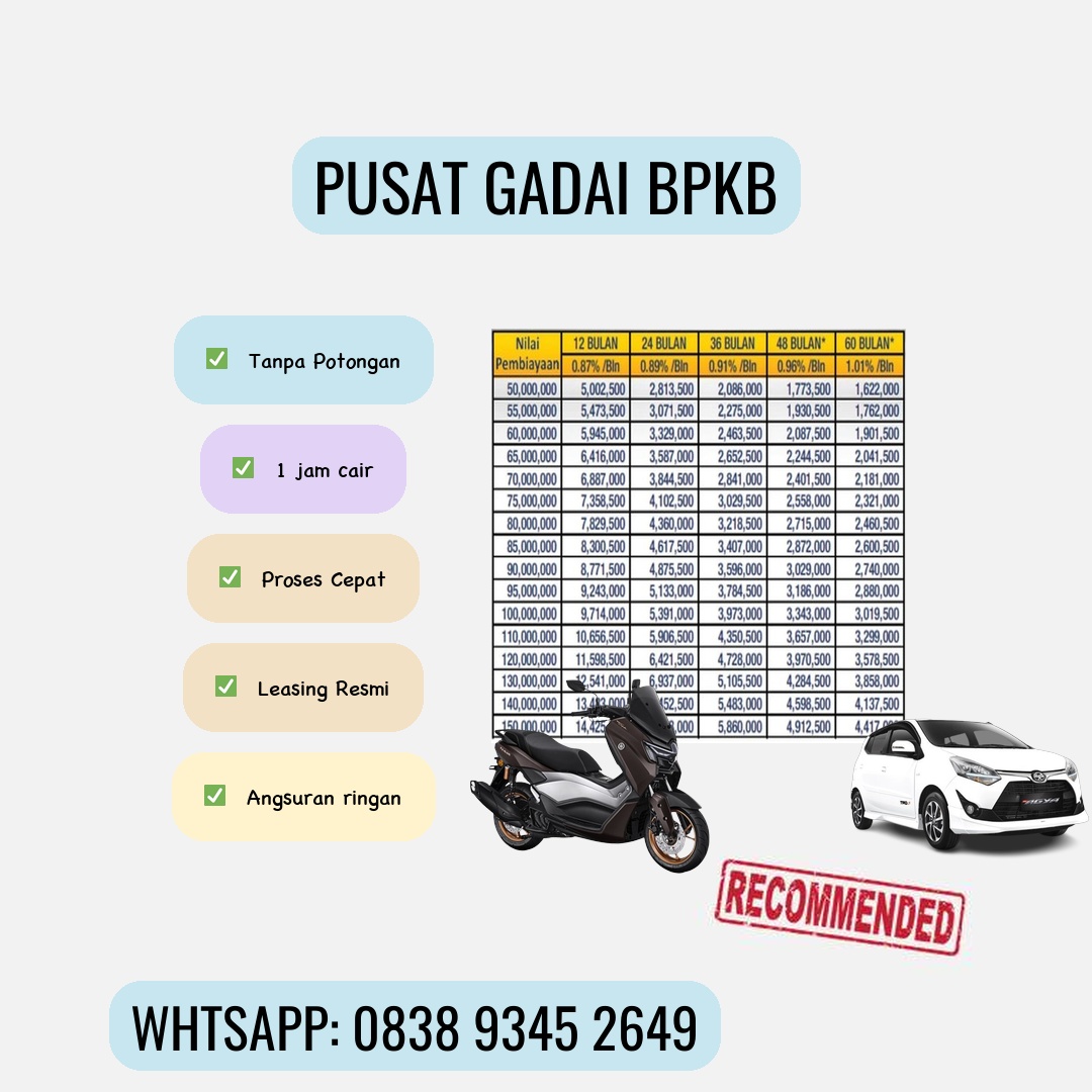 Butuh dana cepat untuk berbagai keperluan mendesak? Jangan khawatir! Gadai BPKB motor dan mobil bisa menjadi solusi finansial yang tepat dan mudah diakses. Artikel ini akan membahas seluk-beluk gadai BPKB, keuntungannya, dan hal-hal penting yang perlu Anda perhatikan sebelum memutuskan untuk menggunakan layanan ini. Apa Itu Gadai BPKB Motor dan Mobil? Gadai BPKB adalah proses meminjam uang dengan menggunakan Sertifikat Registrasi Kendaraan Bermotor (BPKB) sebagai jaminan. Anda tetap dapat menggunakan kendaraan Anda selama masa pinjaman, namun BPKB akan dipegang oleh lembaga pembiayaan hingga pinjaman lunas. Ini berbeda dengan penjualan kendaraan, di mana Anda akan kehilangan kepemilikan kendaraan tersebut. Keuntungan Menggadaikan BPKB Motor dan Mobil: Proses Cepat dan Mudah: Proses pengajuan gadai BPKB umumnya lebih cepat dan mudah dibandingkan dengan pengajuan pinjaman konvensional di bank. Anda bisa mendapatkan dana yang dibutuhkan dalam waktu singkat. Persyaratan Mudah: Persyaratan untuk mengajukan gadai BPKB umumnya tidak serumit pinjaman bank. Anda hanya perlu menyiapkan BPKB kendaraan dan beberapa dokumen pendukung lainnya. Fleksibel: Anda dapat memilih jangka waktu pinjaman yang sesuai dengan kemampuan keuangan Anda. Beberapa lembaga pembiayaan menawarkan berbagai pilihan tenor pinjaman. Biaya Transparan: Meskipun ada biaya administrasi dan bunga, lembaga pembiayaan yang terpercaya akan memberikan informasi biaya yang transparan dan jelas sejak awal. Akses Dana Cepat: Dana pinjaman akan cair setelah proses verifikasi dokumen selesai, sehingga Anda bisa segera menggunakan dana tersebut untuk keperluan mendesak. Hal Penting yang Perlu Diperhatikan Sebelum Menggadaikan BPKB: Pilih Lembaga Pembiayaan Terpercaya: Pastikan lembaga pembiayaan yang Anda pilih memiliki reputasi baik dan terdaftar resmi. Hindari lembaga pembiayaan ilegal yang menawarkan bunga tinggi dan proses yang tidak transparan. Cek reputasinya Gadai BPKB Motor dan Mobil Kenjeran secara online dan baca review dari pelanggan sebelumnya. Pahami Syarat dan Ketentuan: Bacalah dengan teliti semua syarat dan ketentuan pinjaman, termasuk besarnya bunga, biaya administrasi, dan jangka waktu pinjaman. Jangan ragu untuk bertanya kepada petugas jika ada hal yang kurang jelas. Hitung Kemampuan Keuangan: Pastikan Anda mampu membayar cicilan pinjaman sesuai dengan jangka waktu yang telah disepakati. Jangan sampai terbebani dengan cicilan yang terlalu tinggi dan berujung pada kesulitan keuangan. Perhatikan Asuransi: Tanyakan kepada lembaga pembiayaan apakah ada asuransi yang melindungi kendaraan Anda selama masa pinjaman. Ini penting untuk mengantisipasi risiko kerusakan atau kehilangan kendaraan. Bandingkan Penawaran: Jangan terburu-buru mengambil keputusan. Bandingkan penawaran dari beberapa lembaga pembiayaan untuk mendapatkan suku bunga dan biaya yang paling kompetitif. Dokumen yang Diperlukan: Dokumen yang dibutuhkan untuk gadai BPKB umumnya meliputi: BPKB asli kendaraan STNK asli kendaraan KTP asli pemohon Bukti kepemilikan kendaraan (jika ada) Dokumen pendukung lainnya (dapat bervariasi tergantung lembaga pembiayaan) Kesimpulan: Gadai BPKB motor dan mobil dapat menjadi solusi finansial yang efektif untuk memenuhi kebutuhan dana cepat. Namun, pastikan Anda memilih lembaga pembiayaan yang terpercaya dan memahami semua syarat dan ketentuan pinjaman sebelum memutuskan untuk menggunakan layanan ini. Lakukan riset yang matang dan bandingkan penawaran dari beberapa lembaga pembiayaan untuk mendapatkan opsi terbaik yang sesuai dengan kebutuhan dan kemampuan keuangan Anda. Jangan ragu untuk bertanya kepada petugas jika ada hal yang kurang jelas. Dengan perencanaan yang matang, gadai BPKB bisa menjadi solusi yang aman dan menguntungkan. Ingin tahu lebih lanjut tentang gadai BPKB? Hubungi kami sekarang juga! [Tambahkan link ke website atau kontak] #gadaibpkb #gadaibpkbmotor #gadaibpkbmobil #danaccepat #pinjaman #keuangan #finansial #indonesia #tipskeuangan
