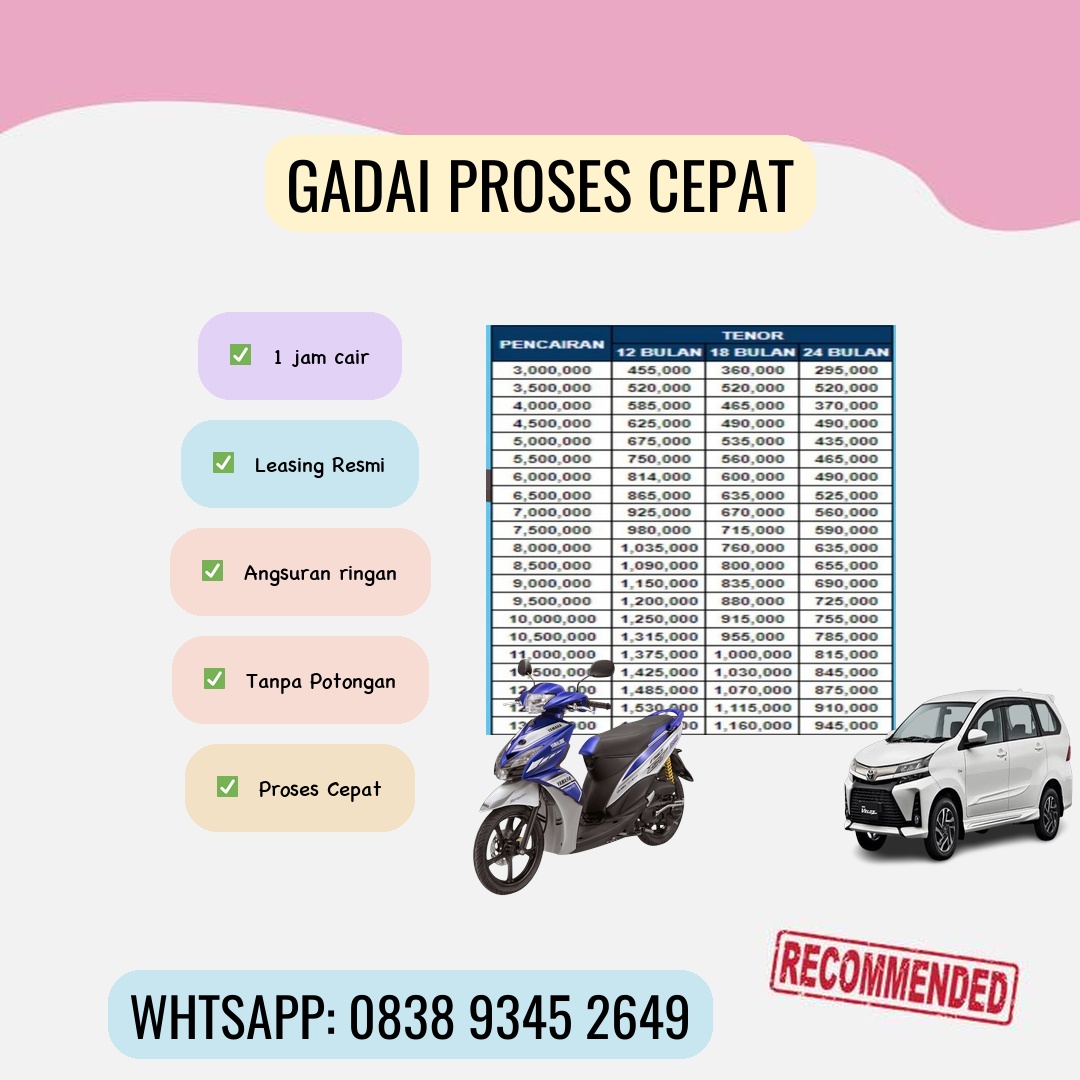 Proses Cepat dan Mudah: Dibandingkan dengan mengajukan pinjaman bank, proses gadai BPKB umumnya lebih cepat dan mudah. Anda tidak perlu menyiapkan banyak dokumen dan persyaratan yang rumit.
