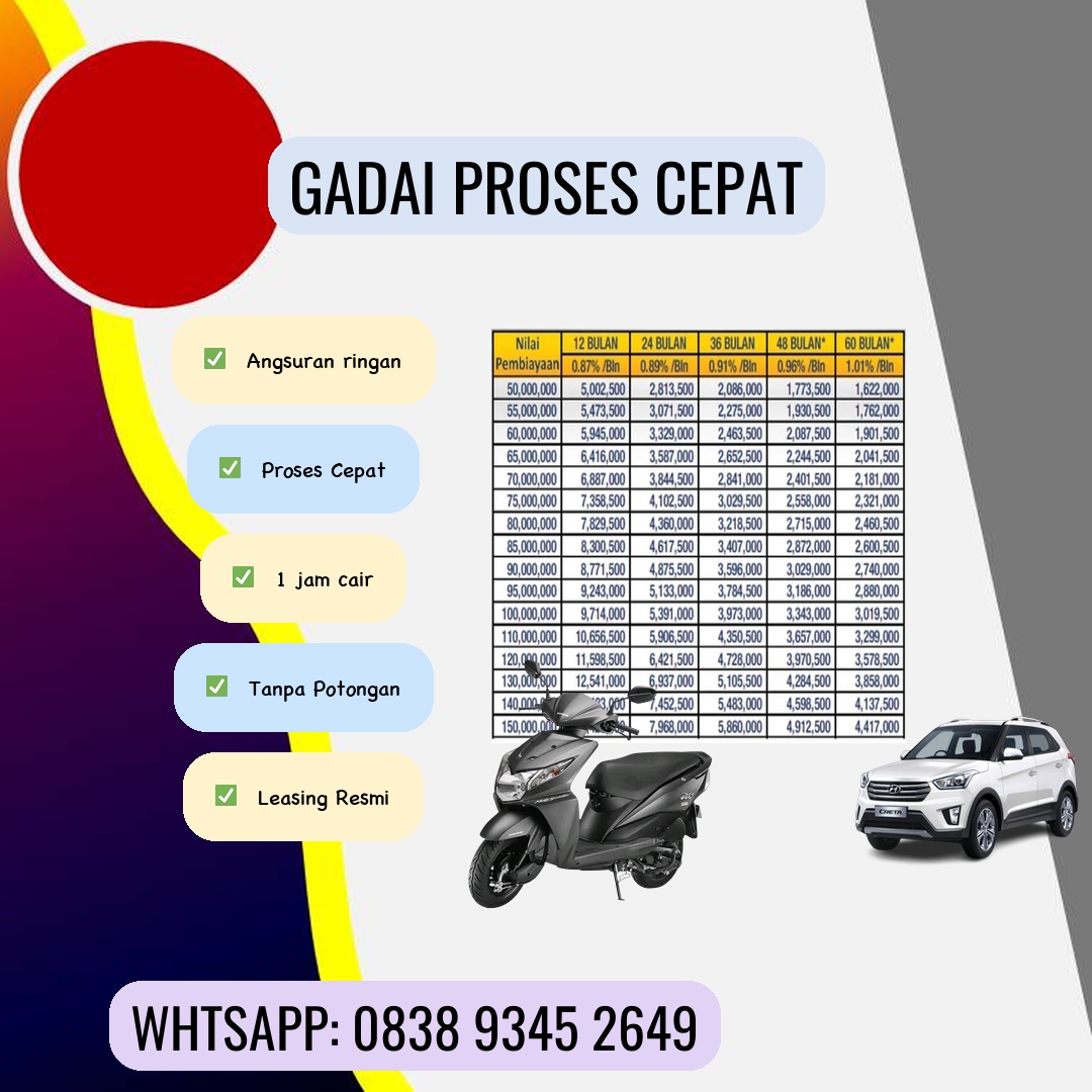 Butuh uang tunai cepat untuk berbagai keperluan mendesak? Jangan khawatir! Gadai BPKB motor dan mobil bisa menjadi solusi finansial yang tepat dan efisien bagi Anda. Artikel ini akan membahas secara detail tentang proses, keuntungan, dan hal-hal yang perlu diperhatikan saat menggadaikan BPKB kendaraan Anda. Mengapa Memilih Gadai BPKB Motor dan Mobil? Di tengah kebutuhan hidup yang semakin tinggi, terkadang kita membutuhkan akses dana cepat tanpa ribet. Gadai BPKB menawarkan kemudahan dan kecepatan dalam memperoleh pinjaman. Dibandingkan dengan mengajukan pinjaman ke bank yang prosesnya panjang dan berbelit, gadai BPKB menawarkan solusi yang lebih praktis dan fleksibel. Berikut beberapa keuntungannya: Proses Cepat dan Mudah: Anda tidak perlu menyediakan banyak dokumen dan prosesnya jauh lebih singkat dibandingkan dengan pengajuan kredit konvensional. Persyaratan Mudah: Umumnya, persyaratan yang dibutuhkan hanya BPKB kendaraan yang asli dan beberapa dokumen pendukung lainnya. Jangka Waktu Fleksibel: Anda bisa memilih jangka waktu pinjaman yang sesuai dengan kemampuan Anda untuk mengembalikannya. Jumlah Pinjaman Sesuai Kebutuhan: Besarnya pinjaman disesuaikan dengan nilai jual kendaraan Anda. Privasi Terjaga: Transaksi gadai BPKB umumnya menjaga kerahasiaan data pribadi Anda. Hal-Hal Penting yang Perlu Diperhatikan Sebelum Menggadaikan BPKB: Sebelum memutuskan untuk menggadaikan BPKB kendaraan Anda, ada beberapa hal penting yang perlu diperhatikan: Pilih Lembaga yang Terpercaya: Pastikan lembaga gadai yang Anda pilih memiliki izin resmi dan reputasi yang baik. Hindari lembaga gadai ilegal yang menawarkan bunga tinggi dan syarat yang tidak transparan. Periksa testimoni dan review dari pelanggan sebelumnya. Pahami Suku Bunga dan Biaya Admin: Pelajari dengan teliti suku bunga yang dikenakan dan biaya administrasi lainnya. Bandingkan suku bunga dari beberapa lembaga gadai untuk mendapatkan penawaran terbaik. Perhatikan Jangka Waktu Pembayaran: Pilih jangka waktu pembayaran yang sesuai dengan kemampuan Anda. Jangan sampai terbebani dengan cicilan yang Gadai BPKB Motor dan Mobil Pelabuhan terlalu besar. Baca Kontrak dengan Cermat: Sebelum menandatangani kontrak, bacalah seluruh isi kontrak dengan teliti. Pastikan Anda memahami semua ketentuan dan klausul yang tertera di dalamnya. Kondisi Kendaraan: Kondisi kendaraan Anda akan mempengaruhi nilai taksir dan jumlah pinjaman yang bisa Anda dapatkan. Kendaraan yang dalam kondisi baik dan terawat akan mendapatkan nilai taksir yang lebih tinggi. Bagaimana Proses Gadai BPKB Motor dan Mobil? Prosesnya umumnya cukup sederhana: 1. Konsultasi: Hubungi lembaga gadai dan konsultasikan kebutuhan pinjaman Anda. 2. Penilaian Kendaraan: Lembaga gadai akan melakukan penilaian terhadap kendaraan Anda untuk menentukan nilai jaminannya. 3. Penandatanganan Kontrak: Setelah kesepakatan tercapai, Anda akan menandatangani kontrak pinjaman. 4. Pencairan Dana: Dana pinjaman akan dicairkan setelah semua proses selesai. 5. Pelunasan Pinjaman: Bayar cicilan pinjaman sesuai dengan jadwal yang telah disepakati. Tips Memilih Lembaga Gadai BPKB yang Tepat: Cari informasi online: Manfaatkan internet untuk mencari informasi mengenai lembaga gadai BPKB yang terpercaya dan memiliki rating baik. Bandingkan suku bunga dan biaya: Jangan langsung tergiur dengan penawaran suku bunga rendah, pastikan untuk membandingkan total biaya yang harus Anda bayarkan. Perhatikan reputasi dan legalitas: Pastikan lembaga gadai tersebut memiliki izin resmi dan reputasi yang baik di masyarakat. Baca review dan testimoni: Perhatikan komentar dan pengalaman pengguna lain sebelum memutuskan untuk menggunakan jasa lembaga gadai tertentu. Kesimpulan: Gadai BPKB motor dan mobil menjadi solusi praktis untuk mendapatkan dana cepat. Namun, penting untuk memilih lembaga gadai yang terpercaya dan memahami semua syarat dan ketentuan sebelum melakukan transaksi. Dengan perencanaan yang matang dan kehati-hatian, Anda dapat memanfaatkan layanan gadai BPKB dengan bijak dan aman. Jangan ragu untuk bertanya dan mencari informasi lebih lanjut sebelum membuat keputusan. Ingin mengetahui lebih lanjut? Hubungi kami sekarang juga! [Tambahkan nomor telepon atau link website]