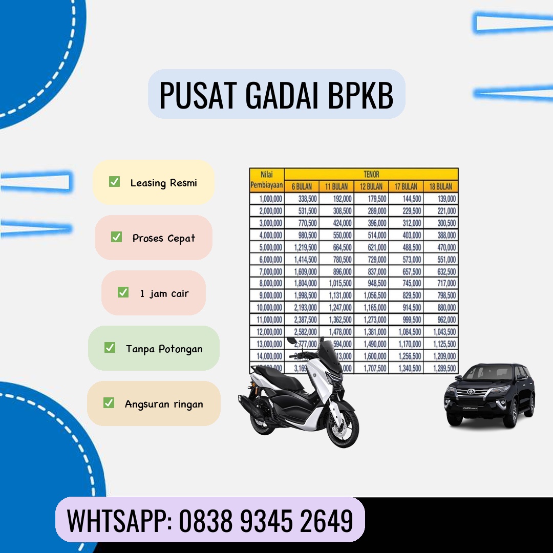 Butuh dana segar untuk berbagai keperluan mendesak? Apakah Anda pemilik motor atau mobil dan membutuhkan akses dana cepat tanpa ribet? Gadai BPKB motor dan mobil bisa menjadi solusi terbaik! Artikel ini akan memberikan informasi lengkap dan terpercaya mengenai proses, keuntungan, dan hal-hal yang perlu Anda perhatikan sebelum memutuskan untuk menggadaikan BPKB kendaraan Anda. Keuntungan Menggadaikan BPKB Motor dan Mobil Menggadaikan BPKB kendaraan memiliki beberapa keuntungan yang menarik, terutama bagi Anda yang membutuhkan dana cepat: Proses Cepat dan Mudah: Dibandingkan dengan mengajukan pinjaman di bank, proses gadai BPKB umumnya jauh lebih cepat dan mudah. Anda tidak perlu melalui birokrasi yang rumit dan berbelit. Persyaratan Sederhana: Persyaratan yang dibutuhkan umumnya relatif sederhana, hanya membutuhkan BPKB asli dan beberapa dokumen pendukung lainnya. Proses verifikasi juga biasanya lebih singkat. Dana Cair Cepat: Setelah persyaratan terpenuhi, dana pinjaman akan cair dengan cepat, sehingga Anda bisa segera mengatasi kebutuhan mendesak. Fleksibel: Banyak lembaga keuangan menawarkan berbagai pilihan tenor dan besar pinjaman yang fleksibel, disesuaikan dengan kebutuhan Anda. Tetap Bisa Menggunakan Kendaraan: Salah satu keuntungan utama adalah Anda masih bisa menggunakan kendaraan Anda selama masa pinjaman. Hal ini berbeda dengan menjual kendaraan yang berarti Anda kehilangan aset tersebut. Hal-Hal yang Perlu Diperhatikan Sebelum Menggadaikan BPKB Meskipun menawarkan banyak kemudahan, ada beberapa hal penting yang perlu Anda perhatikan sebelum memutuskan untuk menggadaikan BPKB motor atau mobil Anda: Pilih Lembaga yang Terpercaya: Pastikan Anda memilih lembaga gadai BPKB yang terpercaya dan terdaftar secara resmi. Hindari lembaga yang menawarkan bunga terlalu rendah atau proses yang terlalu mudah, karena bisa jadi merupakan indikasi penipuan. Periksa reputasi dan legalitas lembaga tersebut. Pahami Biaya dan Bunga: Bacalah dengan cermat semua biaya dan bunga yang dikenakan. Hitung total biaya yang harus Anda bayarkan selama masa pinjaman agar tidak terjadi hal-hal yang tidak diinginkan di kemudian hari. Jangan ragu untuk menanyakan detail biaya yang kurang jelas. Tenor Pinjaman: Pilih tenor pinjaman yang sesuai dengan kemampuan Anda untuk membayar. Jangan memaksakan diri Gadai BPKB Motor dan Mobil Pemalang memilih tenor yang terlalu pendek jika Anda merasa kesulitan untuk membayar cicilan. Asuransi: Tanyakan apakah ada asuransi yang melindungi kendaraan Anda selama masa gadai. Hal ini akan melindungi Anda dari kerugian jika terjadi hal-hal yang tidak diinginkan terhadap kendaraan Anda. Perjanjian: Bacalah dengan cermat semua perjanjian sebelum Anda menandatanganinya. Pahami setiap klausul dan jangan ragu untuk menanyakan hal-hal yang kurang Anda mengerti. Proses Gadai BPKB Motor dan Mobil Secara umum, proses gadai BPKB motor dan mobil meliputi langkah-langkah berikut: 1. Konsultasi: Hubungi lembaga gadai BPKB yang Anda pilih dan konsultasikan mengenai kebutuhan pinjaman Anda. 2. Pengajuan Pinjaman: Ajukan pinjaman dengan melengkapi formulir dan dokumen yang dibutuhkan. 3. Verifikasi Dokumen: Lembaga gadai akan memverifikasi dokumen yang Anda berikan. 4. Penilaian Kendaraan: Kendaraan Anda akan dinilai untuk menentukan jumlah pinjaman yang dapat diberikan. 5. Pencairan Dana: Setelah semua proses selesai, dana pinjaman akan dicairkan ke rekening Anda. 6. Pelunasan Pinjaman: Bayar cicilan pinjaman sesuai dengan jadwal yang telah disepakati. Tips Memilih Lembaga Gadai BPKB yang Tepat Memilih lembaga gadai BPKB yang tepat sangat penting untuk menghindari masalah di kemudian hari. Berikut beberapa tips untuk memilih lembaga yang tepat: Cek Reputasi: Cari informasi dan ulasan dari pelanggan sebelumnya. Anda bisa mencari informasi di internet atau bertanya kepada kenalan yang pernah menggunakan jasa gadai BPKB. Bandingkan Bunga dan Biaya: Bandingkan bunga dan biaya yang ditawarkan oleh beberapa lembaga gadai BPKB sebelum Anda memutuskan. Periksa Legalitas: Pastikan lembaga gadai BPKB tersebut terdaftar secara resmi dan memiliki izin operasional yang sah. Kunjungi Kantor Secara Langsung: Jika memungkinkan, kunjungi kantor lembaga gadai BPKB tersebut secara langsung untuk memastikan keamanannya dan bertemu dengan petugasnya. Butuh dana cepat dan mudah? Gadai BPKB motor dan mobil bisa menjadi solusi yang tepat. Pastikan Anda memahami semua informasi dan memilih lembaga yang terpercaya agar prosesnya berjalan lancar dan aman. Jangan ragu untuk bertanya dan konsultasikan kebutuhan Anda sebelum memutuskan untuk menggadaikan BPKB kendaraan Anda. Semoga artikel ini bermanfaat!