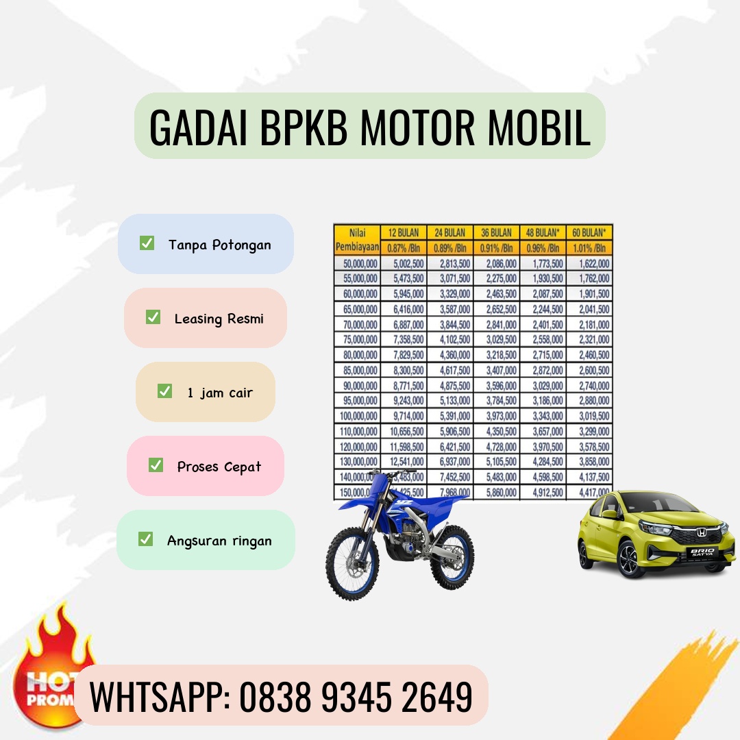 Butuh dana cepat untuk kebutuhan mendesak? Menghadapi kesulitan finansial dan butuh solusi instan? Jangan khawatir! Gadai BPKB motor dan mobil bisa menjadi solusi terbaik untuk Anda. Artikel ini akan membahas secara detail tentang proses, keuntungan, dan hal-hal yang perlu Anda perhatikan sebelum memutuskan untuk menggadaikan BPKB kendaraan Anda. Apa Itu Gadai BPKB Motor dan Mobil? Gadai BPKB motor dan mobil adalah proses meminjam uang dengan menggunakan Sertifikat Registrasi dan Identifikasi Kendaraan Bermotor (BPKB) sebagai jaminan. Anda tetap dapat menggunakan kendaraan Anda sehari-hari, namun BPKB akan disimpan oleh lembaga pembiayaan sebagai jaminan hingga pinjaman lunas. Ini berbeda dengan penjualan kendaraan, karena setelah melunasi pinjaman, Anda akan mendapatkan kembali BPKB Anda. Keuntungan Menggadaikan BPKB Motor dan Mobil Proses Cepat dan Mudah: Dibandingkan dengan mengajukan pinjaman ke bank, proses gadai BPKB umumnya lebih cepat dan mudah. Persyaratannya juga cenderung lebih simpel. Persyaratan Mudah: Umumnya, persyaratan yang dibutuhkan hanya BPKB asli, KTP, dan beberapa dokumen pendukung lainnya. Syarat ini jauh lebih mudah dibandingkan dengan pengajuan kredit konvensional. Dana Cair Cepat: Setelah dokumen diverifikasi, dana pinjaman akan segera cair dan dapat langsung Anda gunakan. Fleksibel: Anda dapat memilih tenor pinjaman yang sesuai dengan kemampuan Anda untuk membayar. Tetap Menggunakan Kendaraan: Anda masih bisa menggunakan kendaraan Anda selama masa pinjaman. Hal-Hal yang Perlu Diperhatikan Sebelum Menggadaikan BPKB Sebelum memutuskan untuk menggadaikan BPKB, ada beberapa hal penting yang perlu Anda perhatikan: Pilih Lembaga Pembiayaan Terpercaya: Pastikan Anda memilih lembaga pembiayaan yang terpercaya dan berizin resmi. Periksa reputasi mereka dan baca ulasan dari pelanggan sebelumnya. Hindari lembaga yang menawarkan bunga sangat rendah atau proses yang terlalu mudah, karena bisa jadi ada jebakan di dalamnya. Pahami Suku Bunga dan Biaya Lainnya: Pahami dengan jelas suku bunga, biaya administrasi, denda keterlambatan pembayaran, dan biaya-biaya lainnya yang mungkin dikenakan. Bandingkan suku bunga Gadai BPKB Motor dan Mobil Surabaya dari beberapa lembaga pembiayaan sebelum memutuskan. Baca Kontrak dengan Teliti: Sebelum menandatangani kontrak, baca seluruh isi kontrak dengan teliti. Pastikan Anda memahami semua ketentuan dan klausul yang tertera di dalamnya. Jangan ragu untuk bertanya jika ada hal yang tidak Anda mengerti. Kemampuan Membayar: Pastikan Anda memiliki kemampuan untuk membayar cicilan pinjaman tepat waktu. Hitung kemampuan finansial Anda dengan cermat agar tidak terbebani dengan cicilan. Keterlambatan pembayaran akan berakibat pada denda dan bahkan penarikan kendaraan. Nilai Jual Kendaraan: Pertimbangkan nilai jual kendaraan Anda. Jangan sampai nilai pinjaman yang Anda dapatkan jauh lebih rendah dari nilai jual kendaraan tersebut. Proses Gadai BPKB Motor dan Mobil Prosesnya umumnya meliputi: 1. Pengajuan Pinjaman: Anda mengajukan pinjaman ke lembaga pembiayaan yang dipilih, dengan melampirkan dokumen yang dibutuhkan. 2. Verifikasi Dokumen: Lembaga pembiayaan akan memverifikasi dokumen yang Anda ajukan. 3. Penilaian Kendaraan: Kendaraan Anda akan dinilai untuk menentukan besaran pinjaman yang dapat diberikan. 4. Penandatanganan Kontrak: Setelah disetujui, Anda akan menandatangani kontrak pinjaman. 5. Pencairan Dana: Dana pinjaman akan dicairkan setelah semua proses selesai. Tips Memilih Lembaga Pembiayaan yang Tepat Cari informasi dan bandingkan: Jangan terburu-buru dalam memilih lembaga pembiayaan. Lakukan riset dan bandingkan tawaran dari beberapa lembaga. Lihat reputasi dan legalitas: Pastikan lembaga pembiayaan tersebut memiliki reputasi yang baik dan terdaftar secara resmi. Perhatikan suku bunga dan biaya-biaya lainnya: Bandingkan suku bunga dan biaya-biaya lainnya yang ditawarkan oleh masing-masing lembaga. Baca review dan testimoni: Lihat review dan testimoni dari pelanggan sebelumnya untuk mengetahui pengalaman mereka. Gadai BPKB motor dan mobil bisa menjadi solusi finansial yang efektif jika Anda membutuhkan dana cepat dan bijak dalam mengelola pinjaman. Namun, selalu ingat untuk mempertimbangkan semua aspek sebelum memutuskan dan pilihlah lembaga pembiayaan yang terpercaya. Jangan ragu untuk bertanya dan mencari informasi lebih lanjut sebelum mengambil keputusan. Semoga artikel ini bermanfaat!