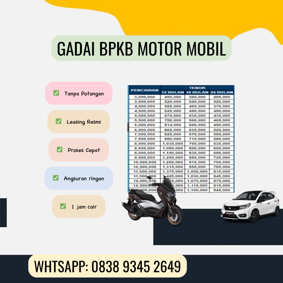 Butuh uang tunai cepat untuk kebutuhan mendesak? Jangan khawatir! Gadai BPKB motor dan mobil bisa menjadi solusi terbaik untuk Anda. Artikel ini akan membahas seluk-beluk gadai BPKB, keuntungannya, serta hal-hal penting yang perlu Anda perhatikan sebelum memutuskan untuk menggadaikan BPKB kendaraan Anda.
