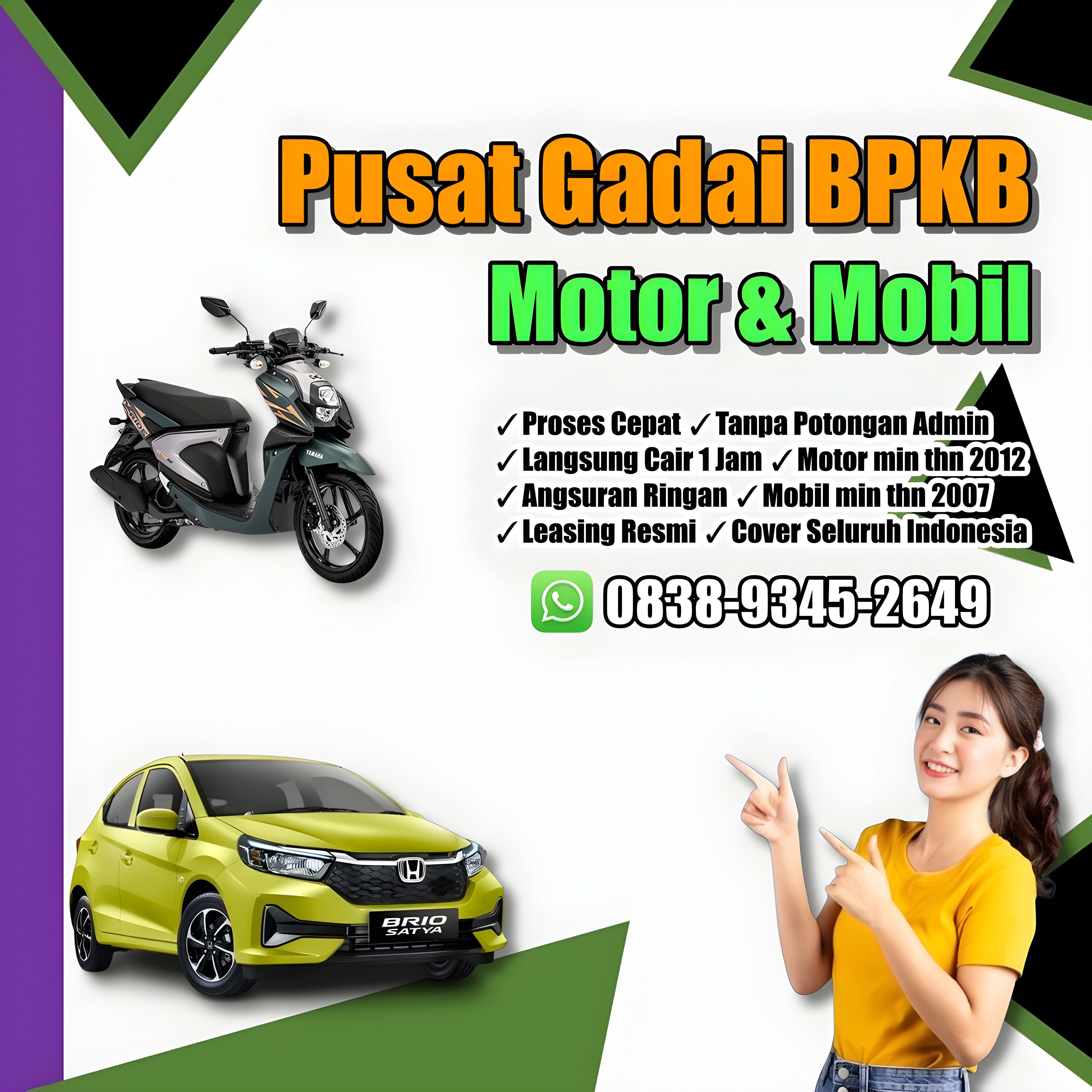 Kebutuhan dana mendesak sering datang tak terduga. Butuh modal usaha, biaya pendidikan, atau keperluan lainnya? Solusi cepat dan terpercaya ada di sini! Kami tawarkan layanan gadai BPKB motor dan mobil dengan proses sangat cepat, mudah, serta aman. Lupakan kerumitan, kami siap melayani Anda di seluruh wilayah Indonesia.